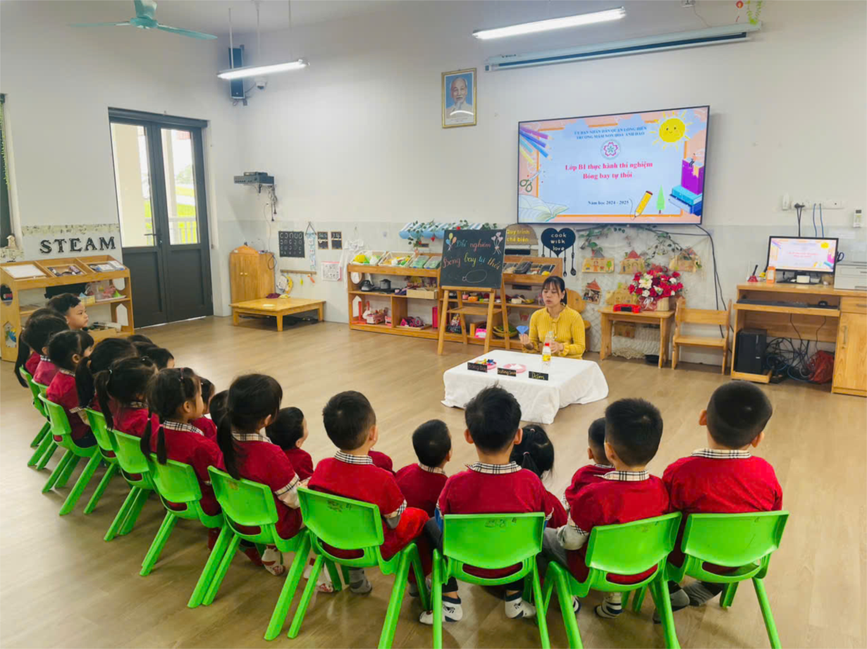 Các bạn nhỏ lớp NT D1 tham gia HĐTN "Nhỏ màu chùm bóng"
