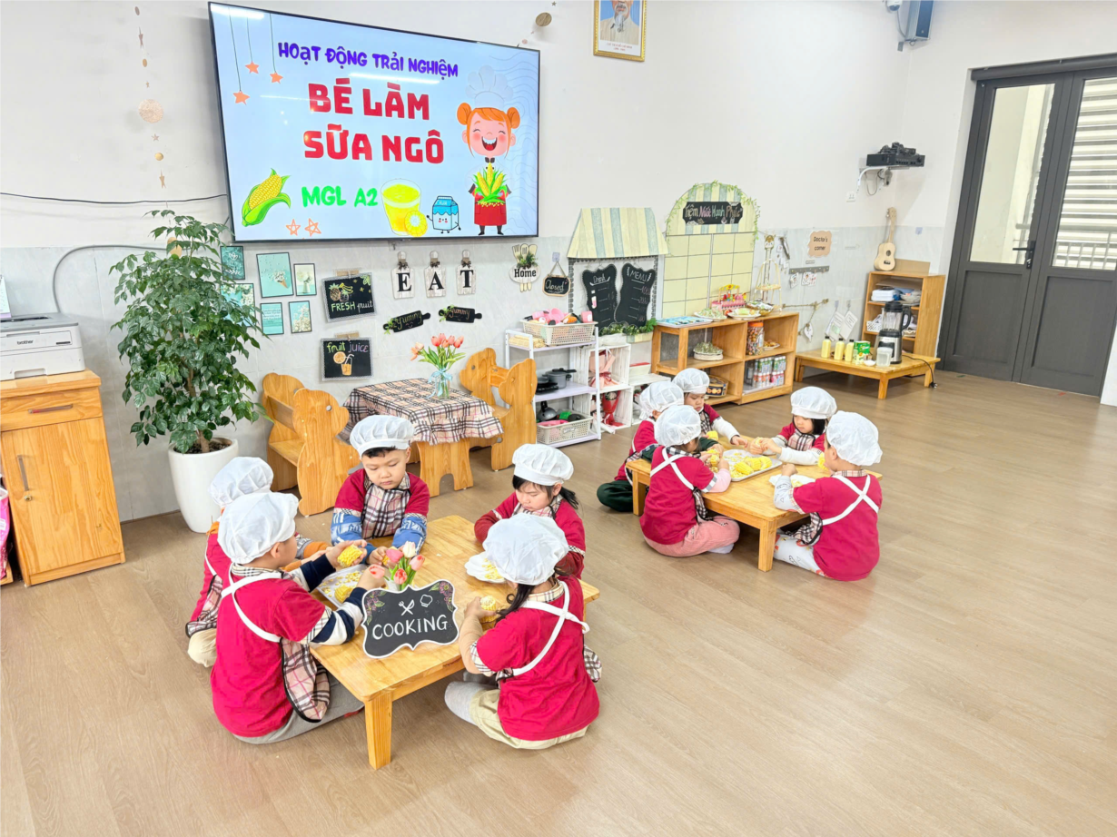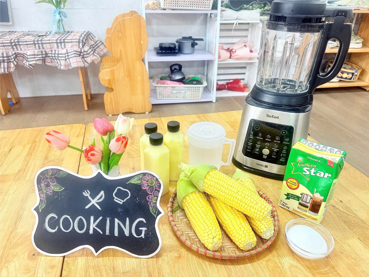 Lớp MGL A2 trải nghiệm Làm sữa ngô