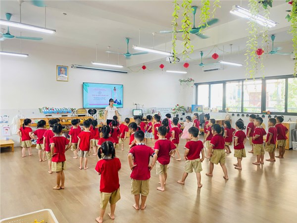 Giờ học thể dục của các bạn nhỏ lớp B1