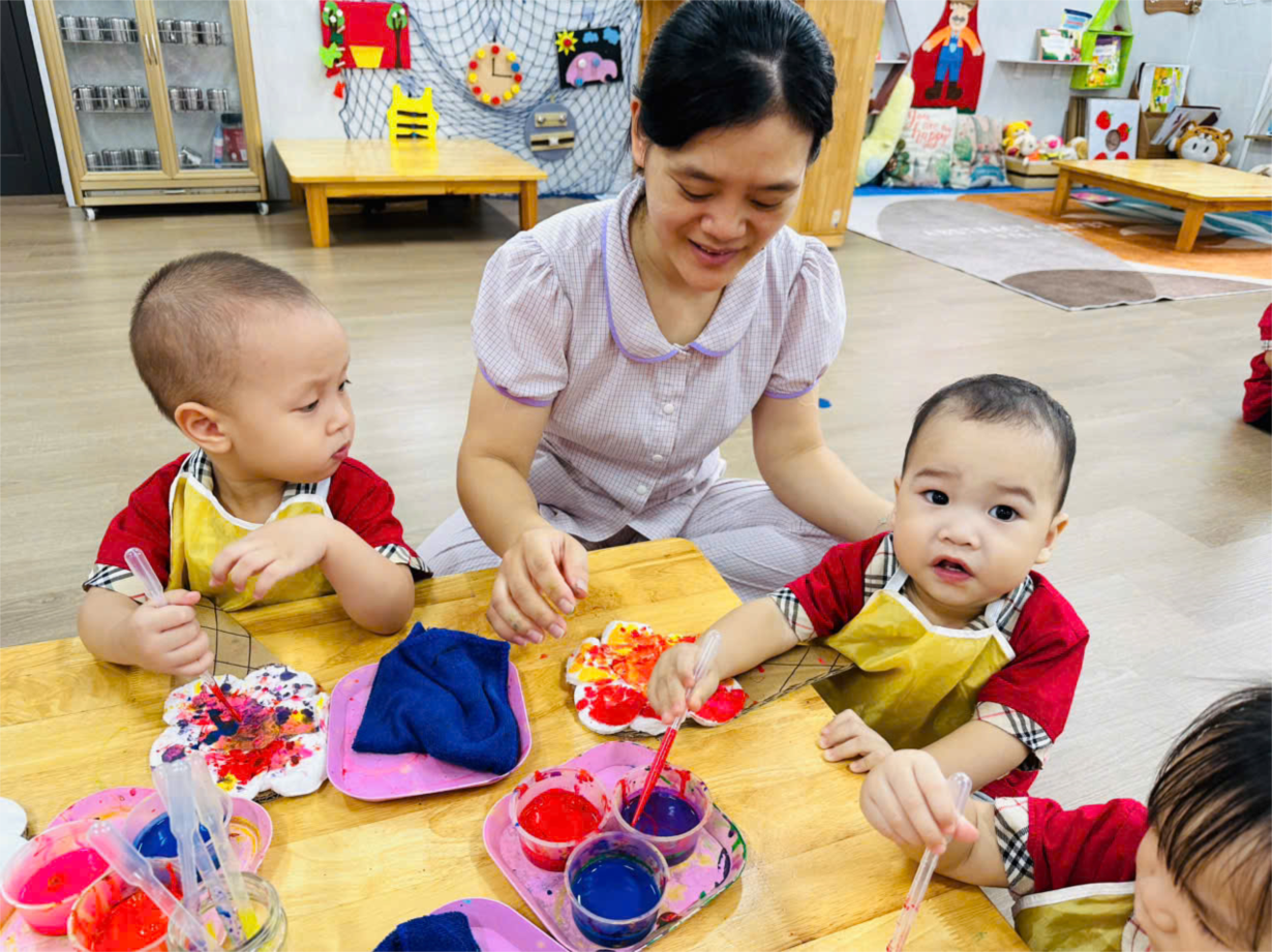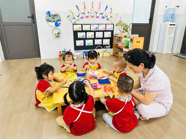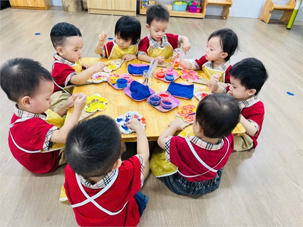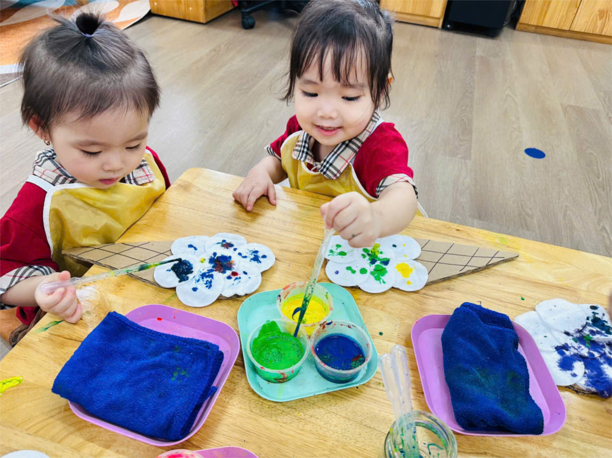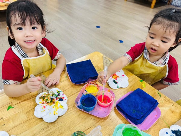 Hoạt động nhỏ màu que kem của các bạn nhỏ lớp D1