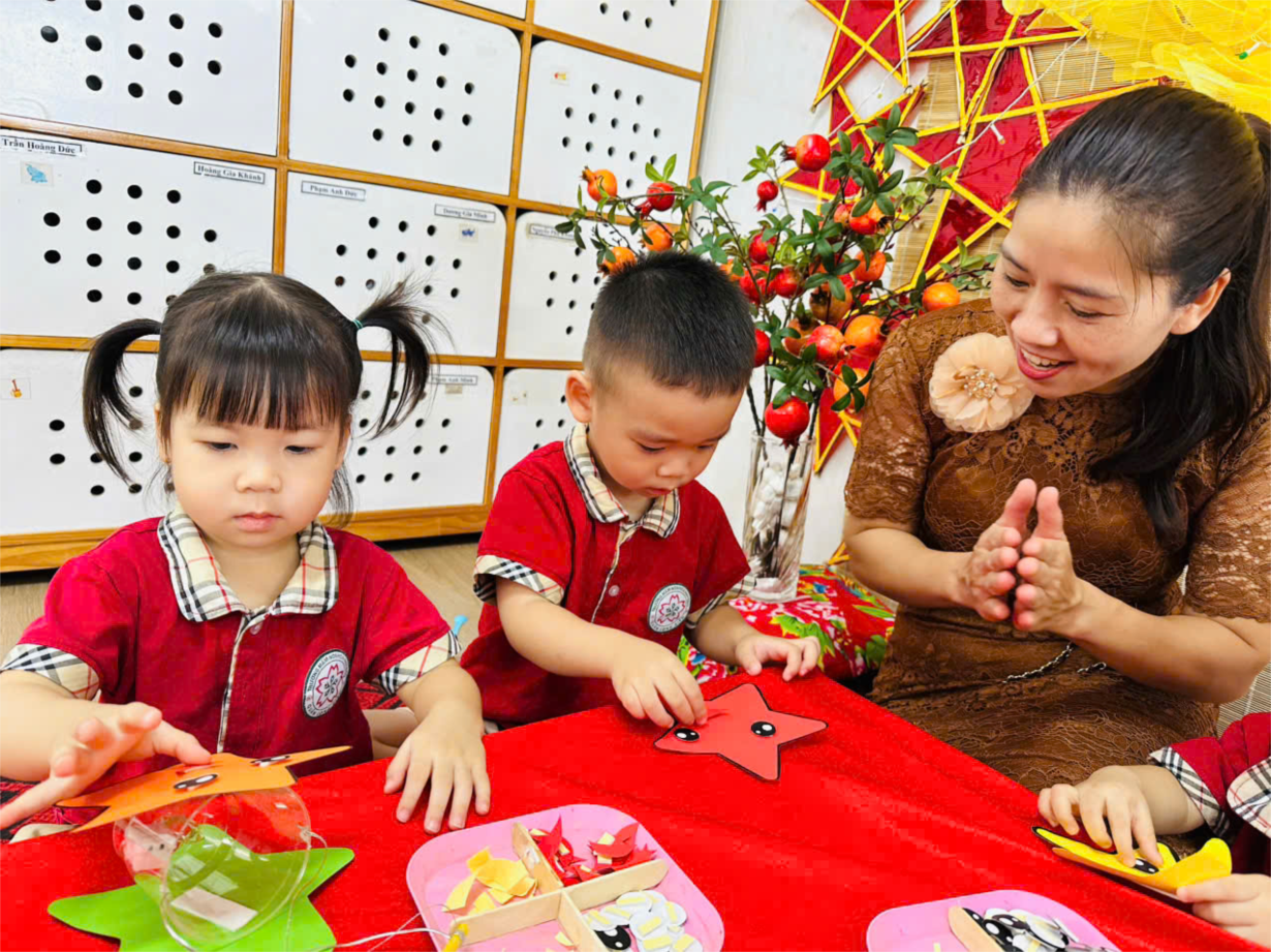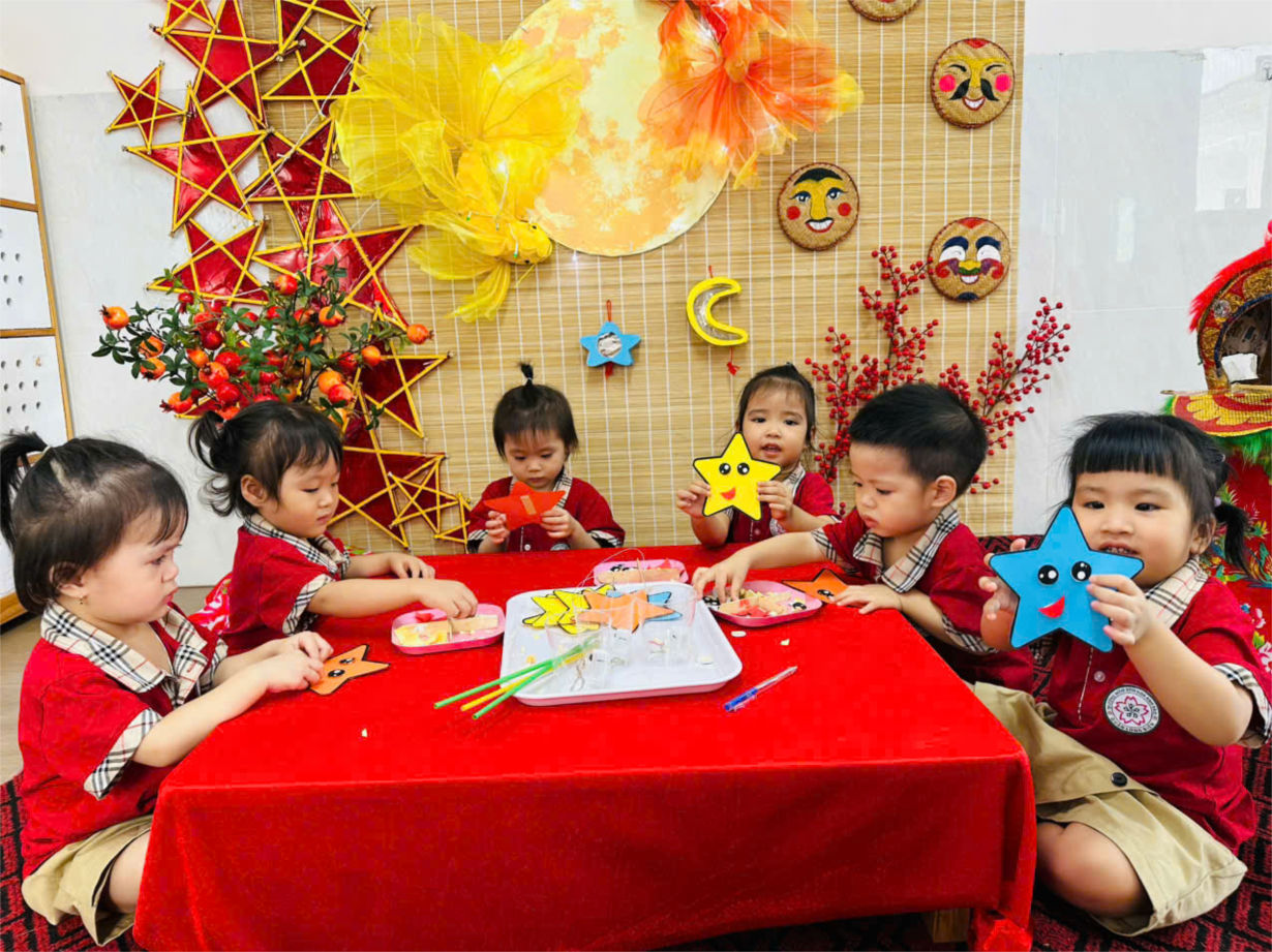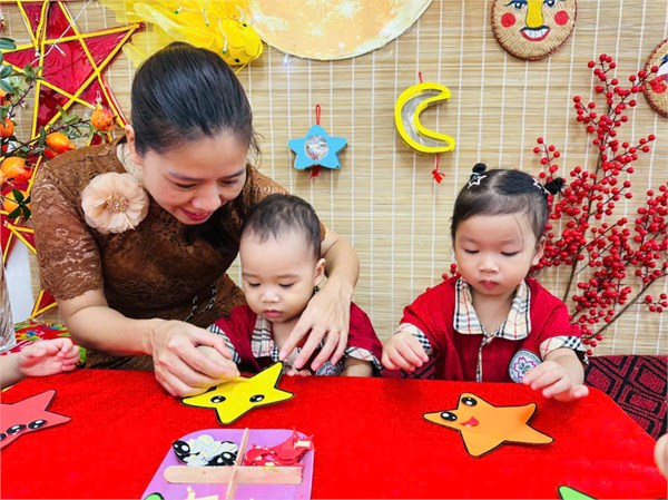 Các bé lớp D1 làm đèn lồng ngôi sao