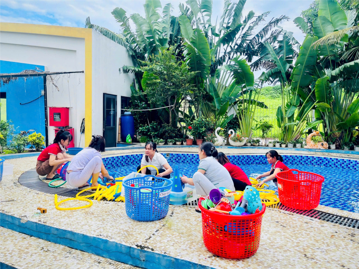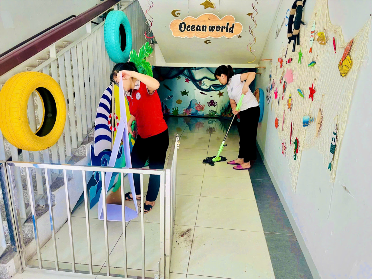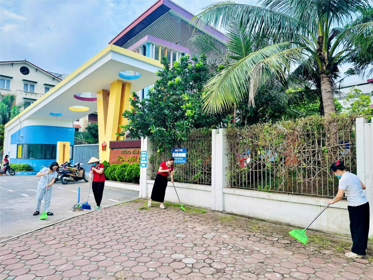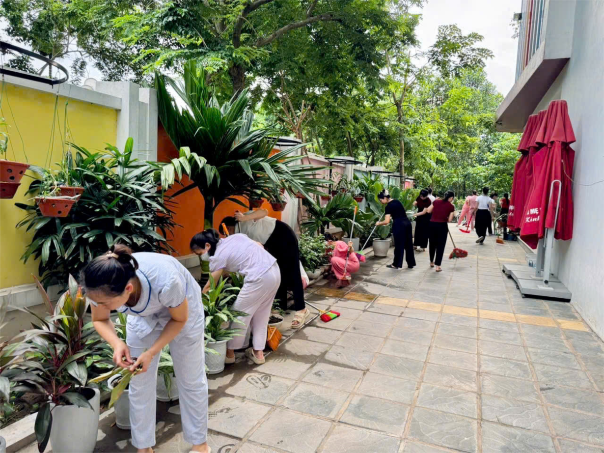 GIÁO VIÊN, NHÂN VIÊN TRƯỜNG MẦM NON HOA ANH ĐÀO TỔNG VỆ SINH MÔI TRƯỜNG PHÒNG CHỐNG DỊCH BỆNH VÀ SỐT XUẤT HUYẾT