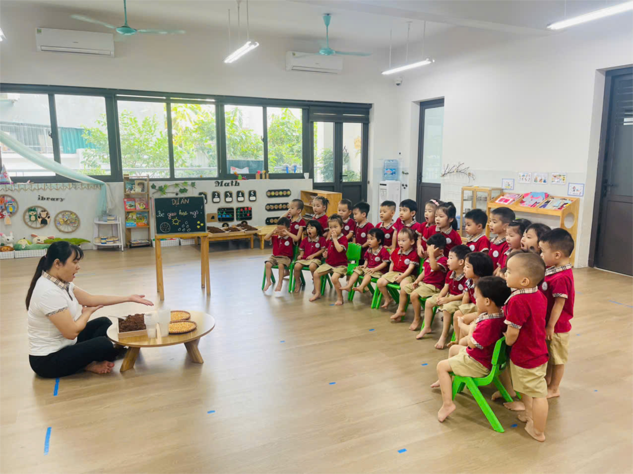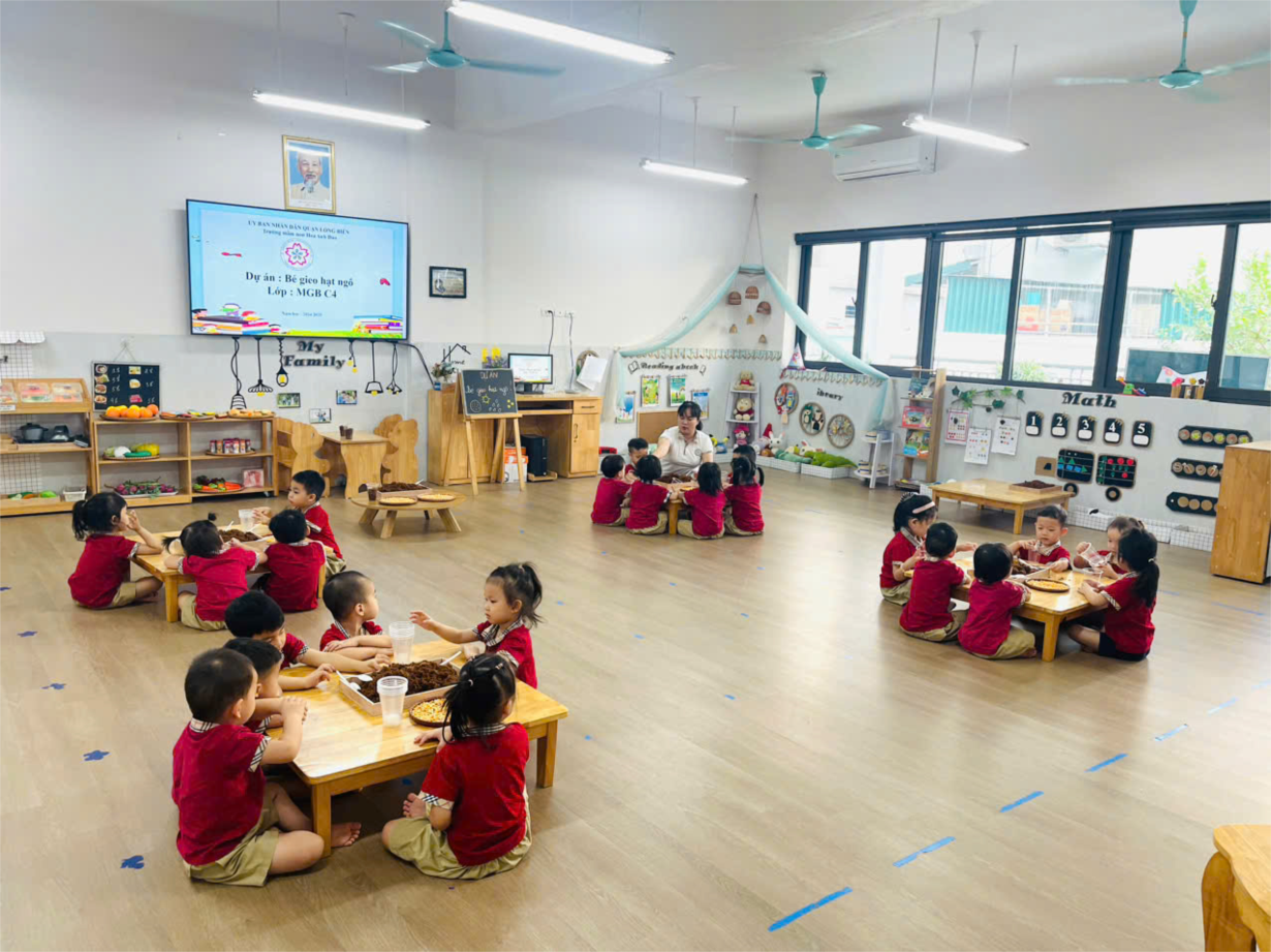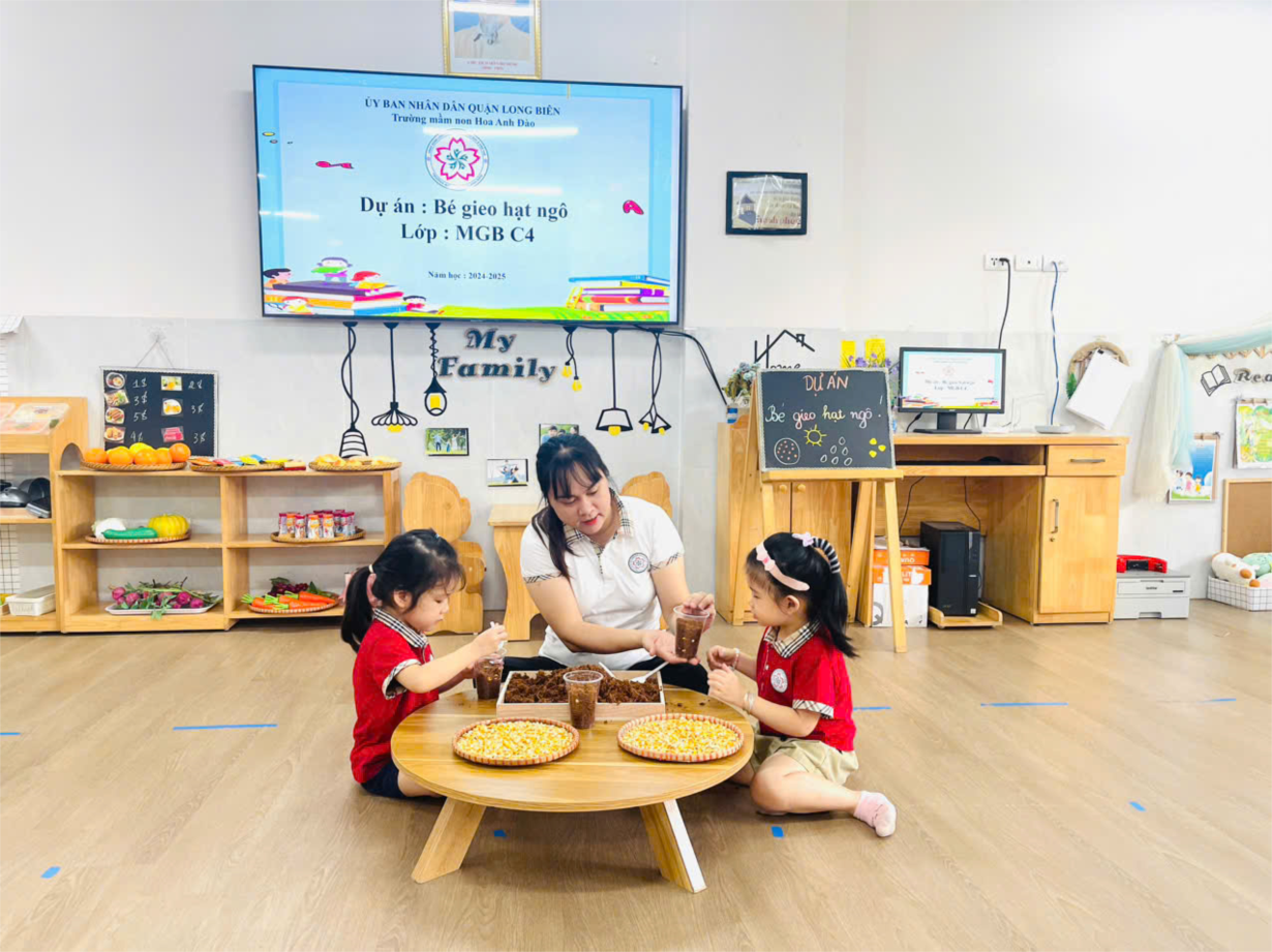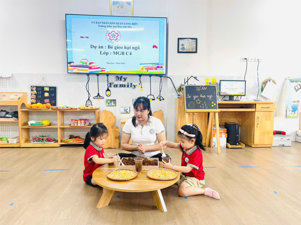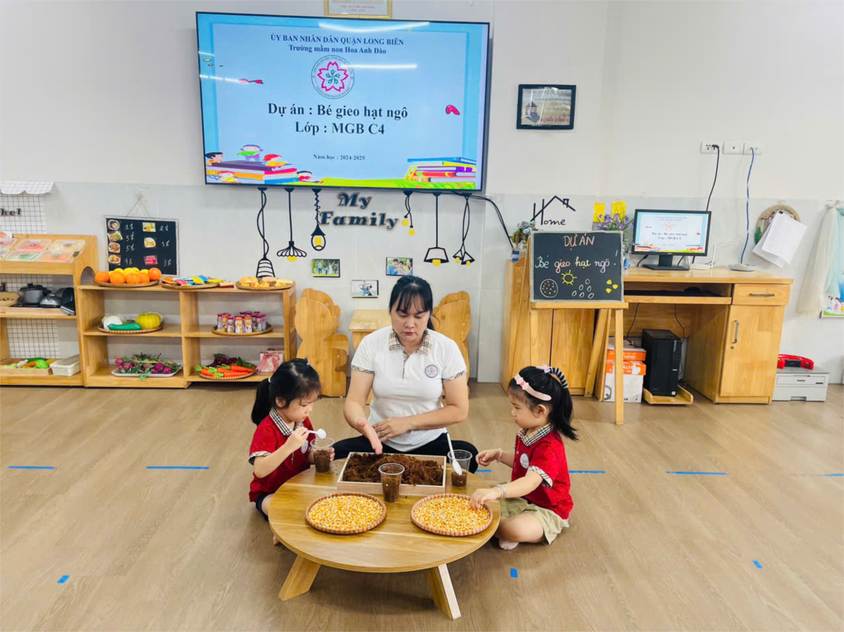 Các bạn lớp C4 làm hoạt động " Bé gieo hạt ngô"